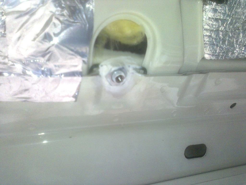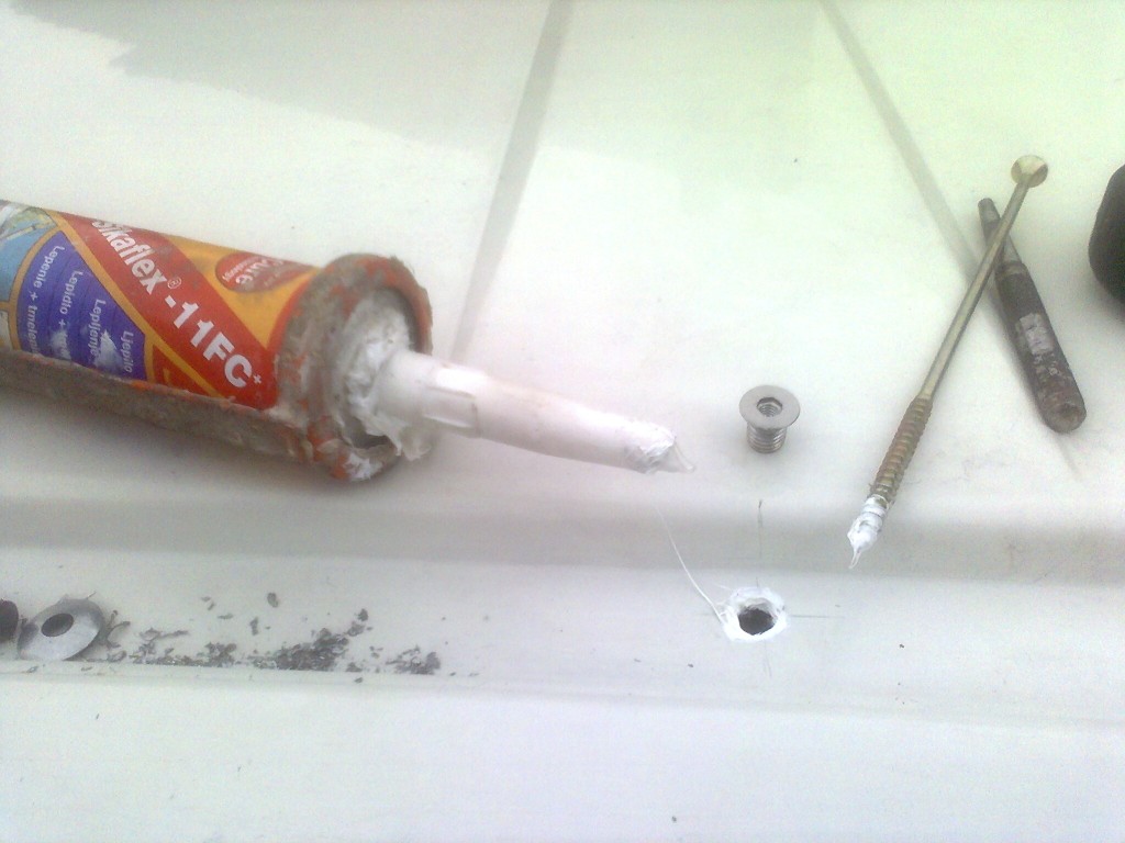 Nýtovací matky jsem zavrhnul, malinko jsem upravil nerezové šrouby M10 se zápustnou hlavou na imbus, vyvrtal a vyříznul do nich závit M6. Zespodu je nízká pozink matka, vše důkladně zalepeno pružným polyuretanovým tmelem...