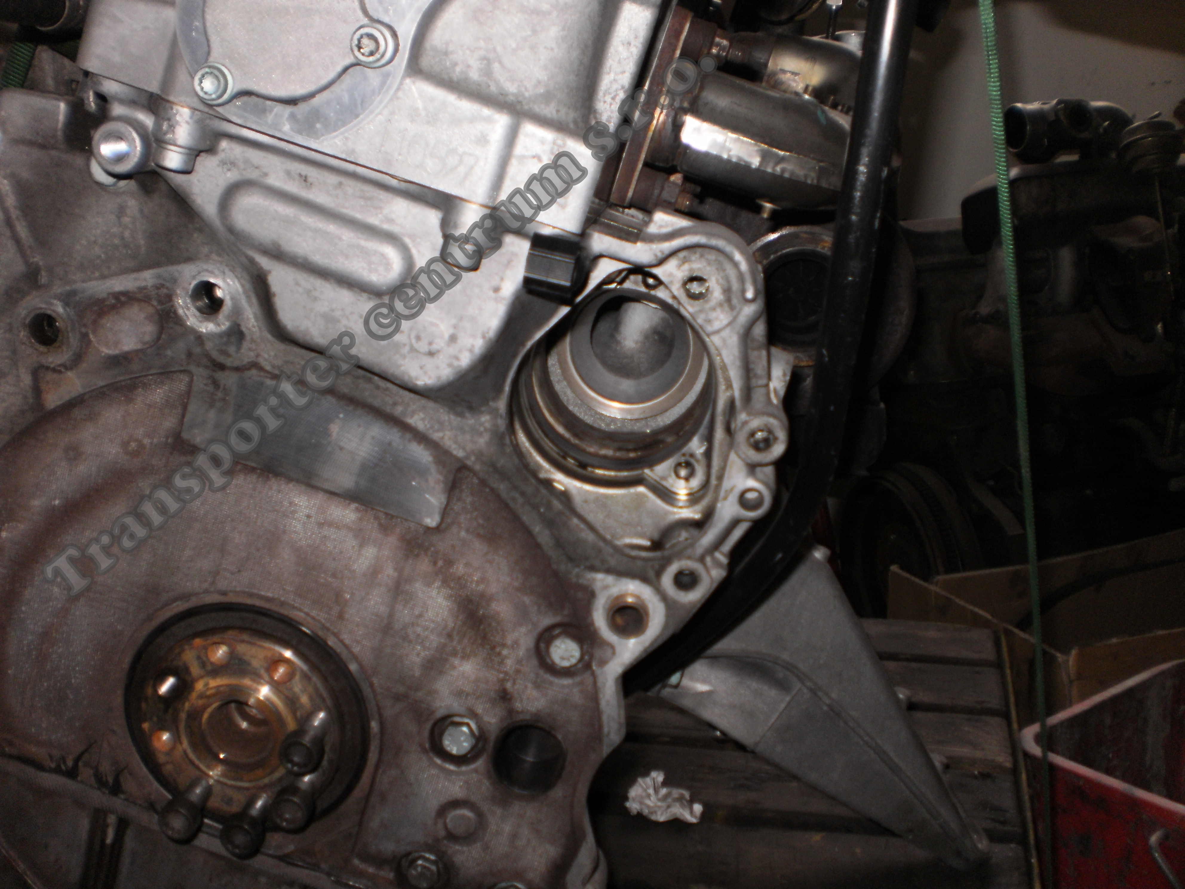 Hodně majitelů T5 s motory 2,5 TDI se mi ptá kde že je ta vodní pumpa umístěna a jak je možný že se dostane chladící kapalina do motorového oleje, vodní pumpa je na straně motoru u převodovky zezadu,je poháněná od rozvodových kol,z fotek je jasné jak to funguje a kde se nachází