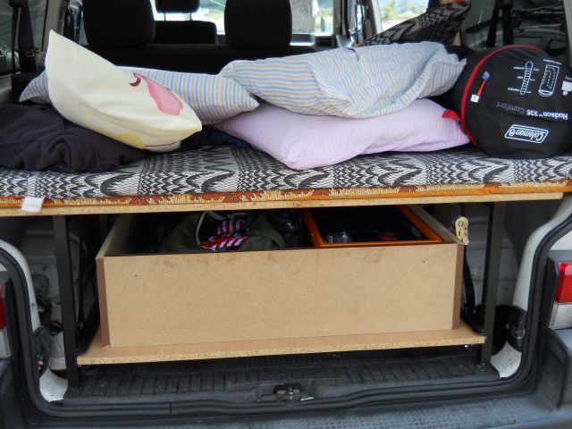 Jo,jasně. Je to skříňka se starým kempingovým vařičem. Byla to docela hoňka sehnat funkční kus. Vše ostatní moderní, se tam nevešlo. Jo ještě ta sklopené opěradlo přední dvojsedačky se ukázalo jako příjemné odkládací místo, např. pro přepravku s nákupem.